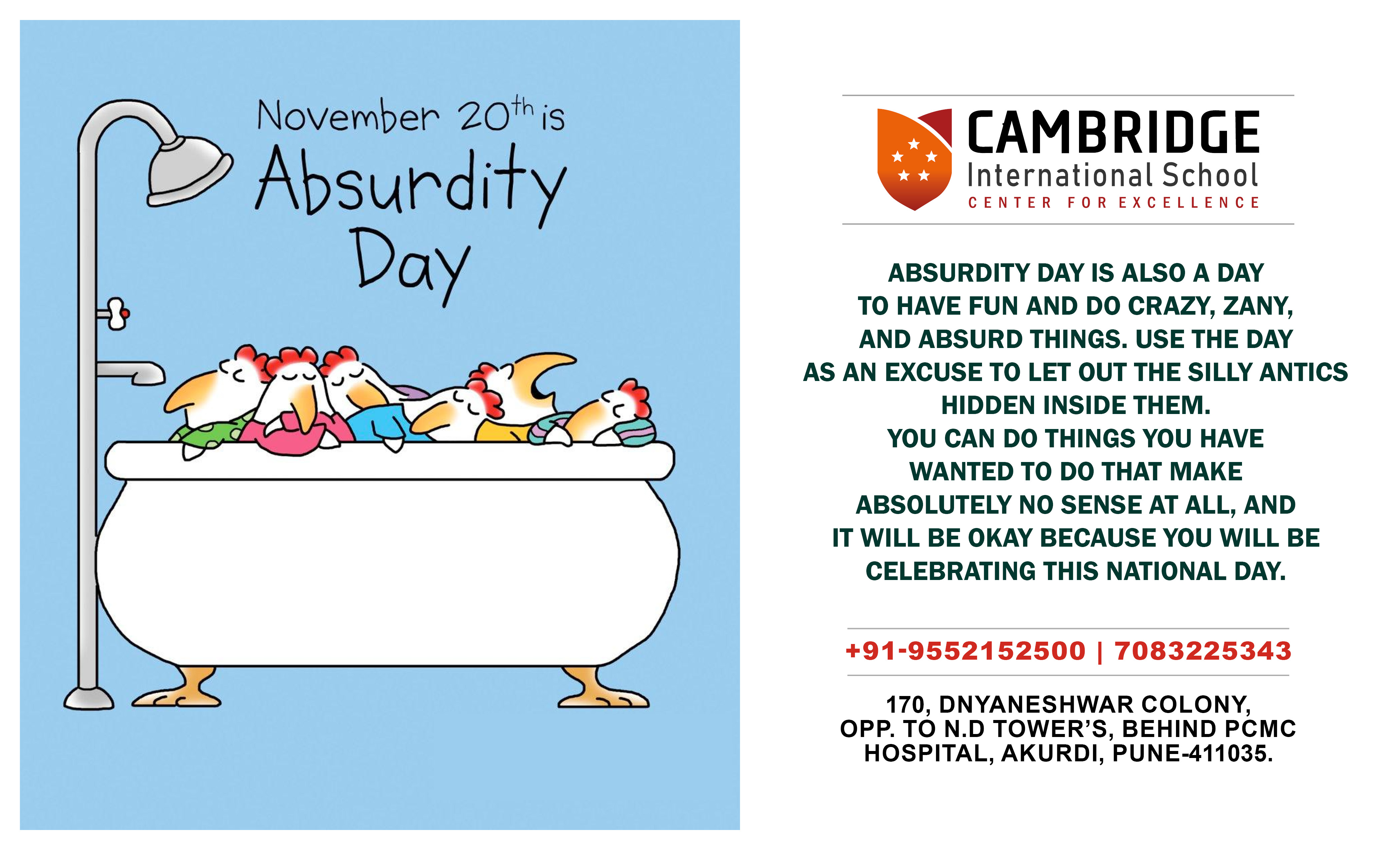 Absurdity Day is also a day to have fun and do crazy, zany, and absurd things. Use the day as an excuse to let out the silly antics hidden inside them. You can do things you have wanted to do that make absolutely no sense at all, and it will be okay because you will be celebrating this National Day.