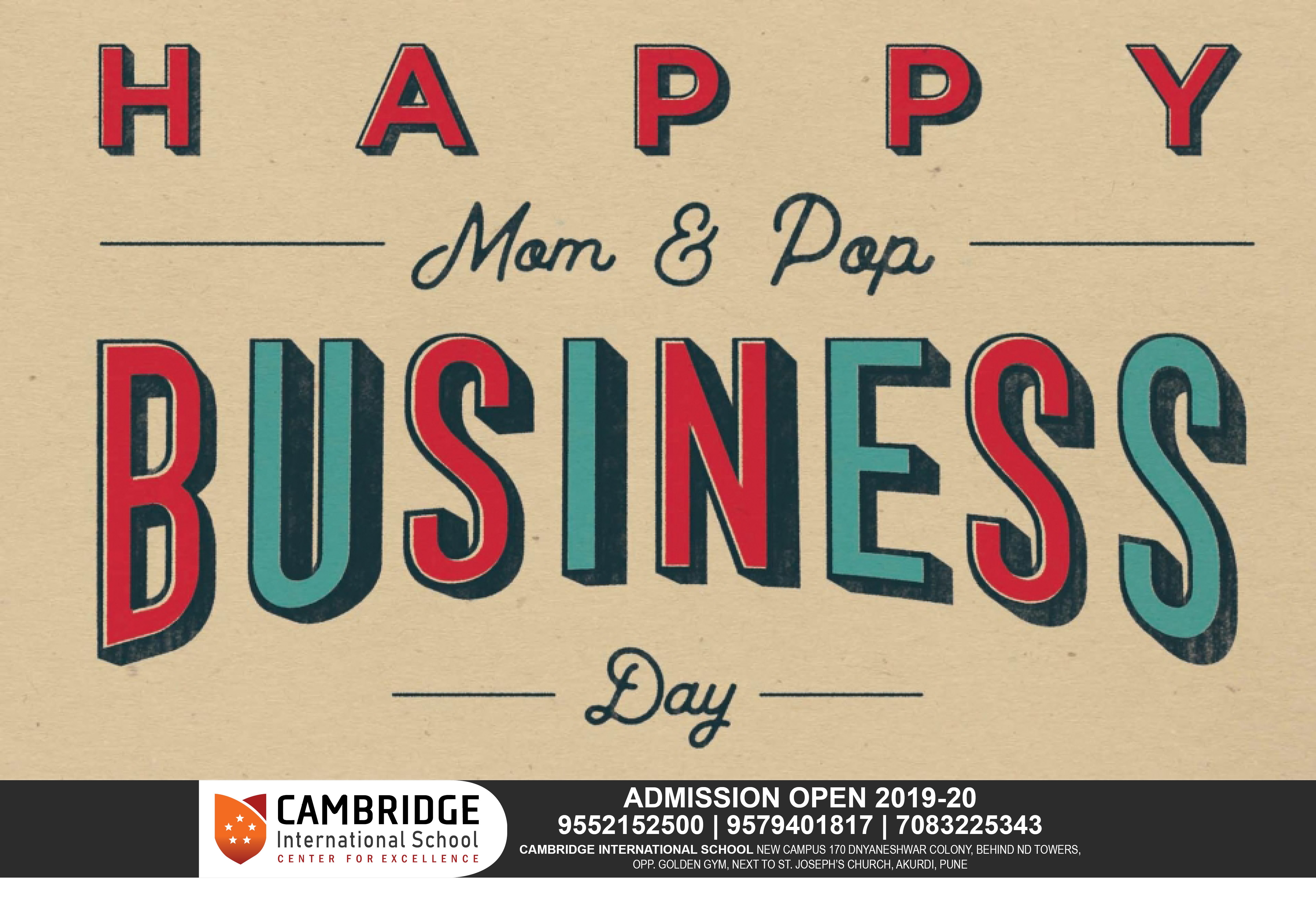 Cambridge International School Celebrating National Mom & Dad Business Owner Day…!!! It is a honor for us to Celebrate National Mom & Dad Business Owner Day. It is a special day to appreciate the long hours, hard work and dedication it takes to run a business by our parents. We Cambridge International School appreciate those Working Parents of our School to running a business is really hard work. If there’s a special Mom and Dad you care about, take a moment to write a note to let the owners and employees know how much you appreciate all the effort and care they put into making your experience wonderful. In Cambridge International School we develop - Independent individual, Self dependent and leadership quality, young entrepreneurship.
