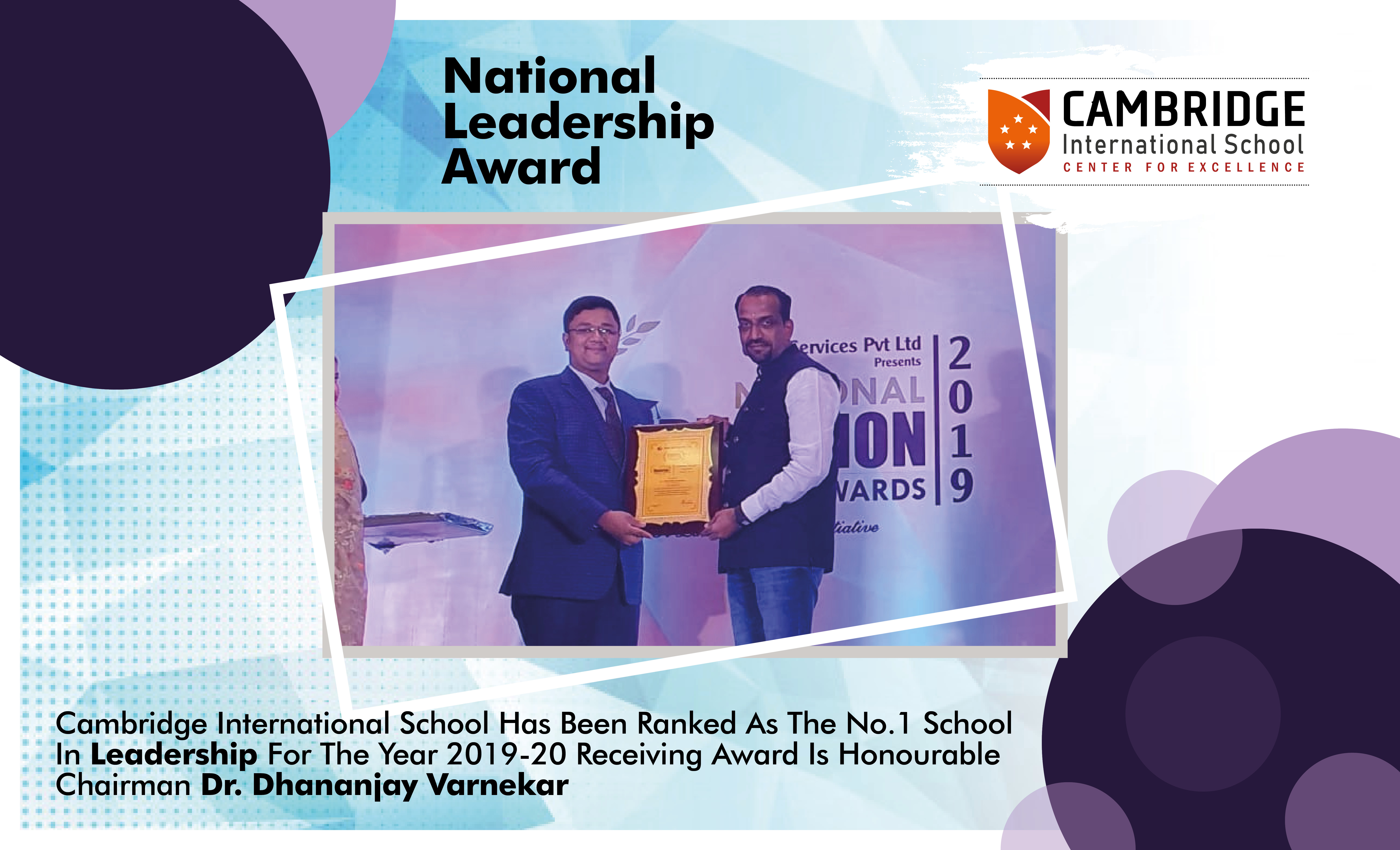 Cambridge International School Has Been Ranked As The No.1 School In Leadership For The Year 2019-20 Receiving Award Is Honourable Chairman Dr. Dhananjay Varnekar
