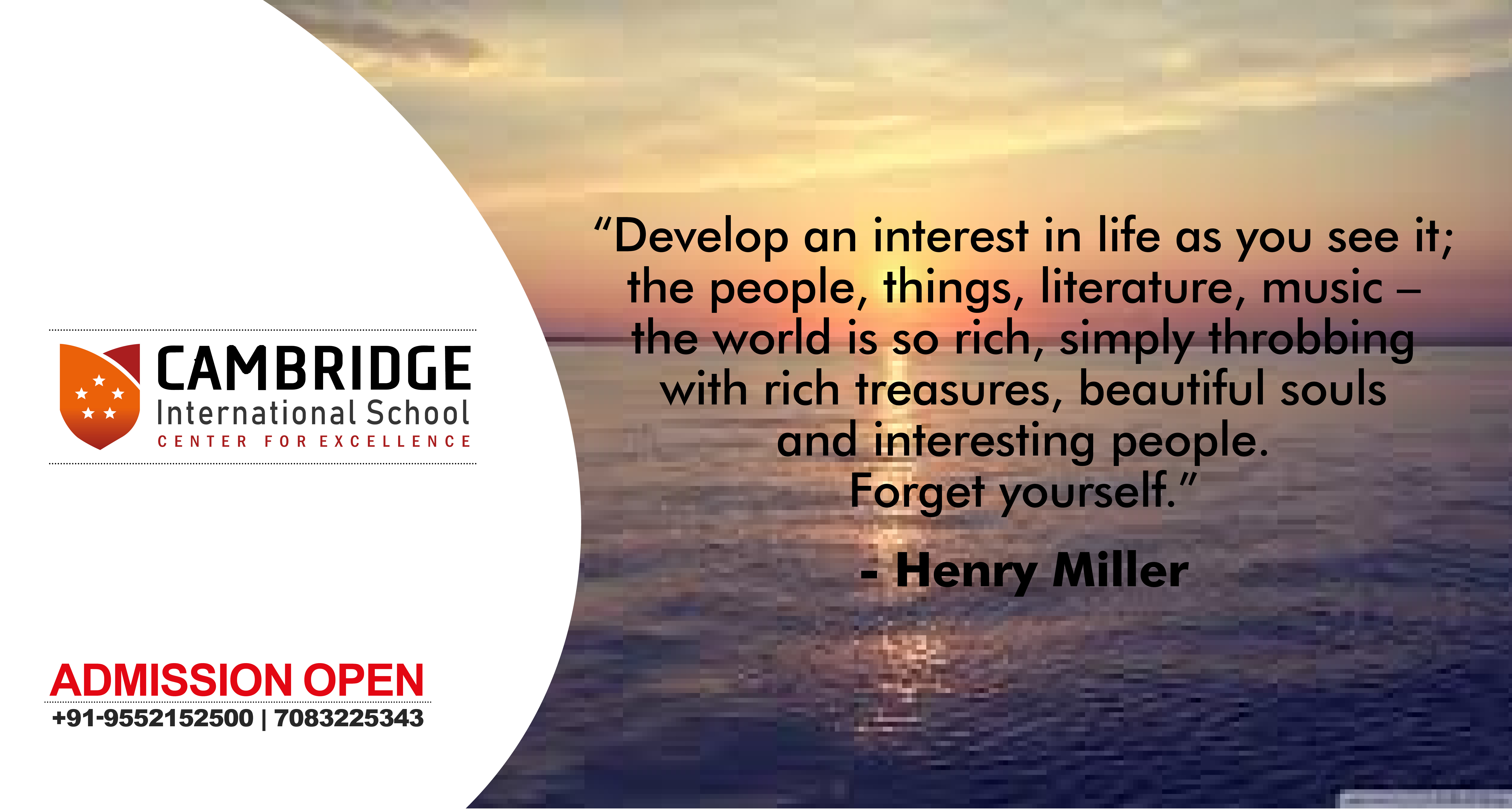 “Develop an interest in life as you see it; the people, things, literature, music – the world is so rich, simply throbbing with rich treasures, beautiful souls and interesting people. Forget yourself.”