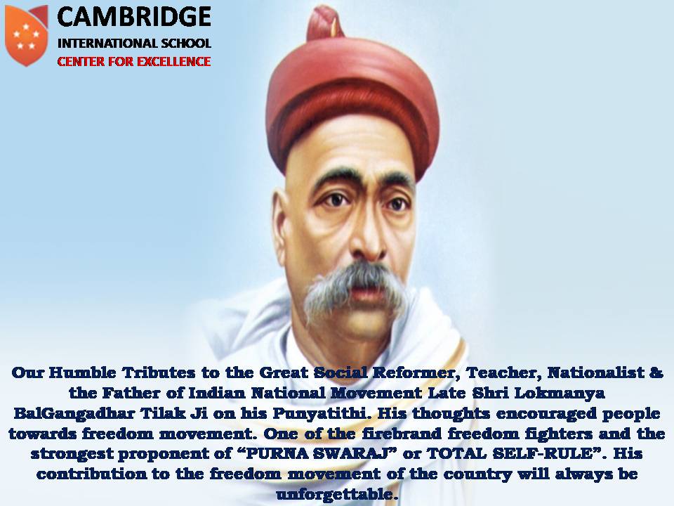Our Humble Tributes to the Great Social Reformer, Teacher, Nationalist & the Father of Indian National Movement Shri Lokmanya BalGangadhar Tilak Ji on his Punyatithi.